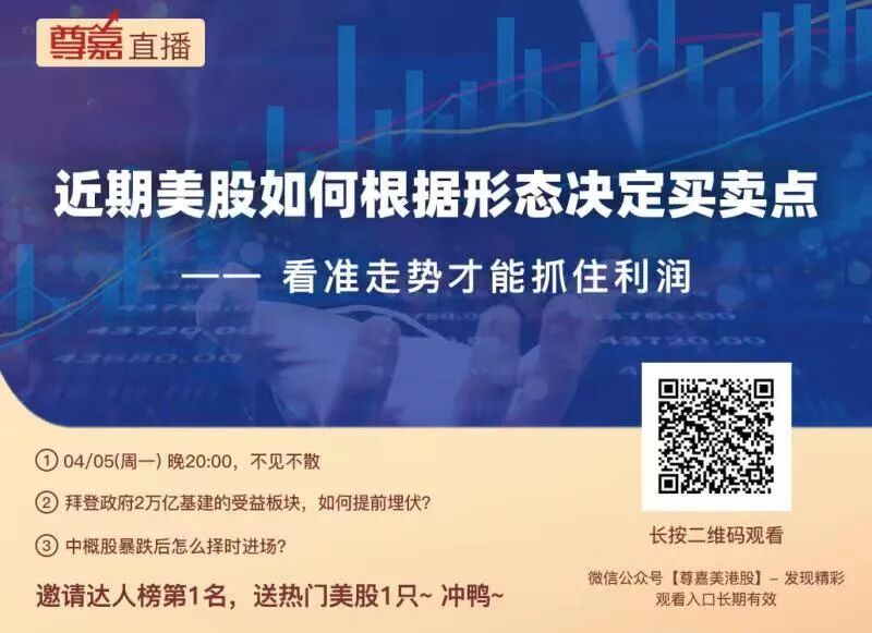 04月05日(周一)晚20:00,尊嘉直播为您带来《近期美股如何根据形态决定买卖点》,欢迎收看!